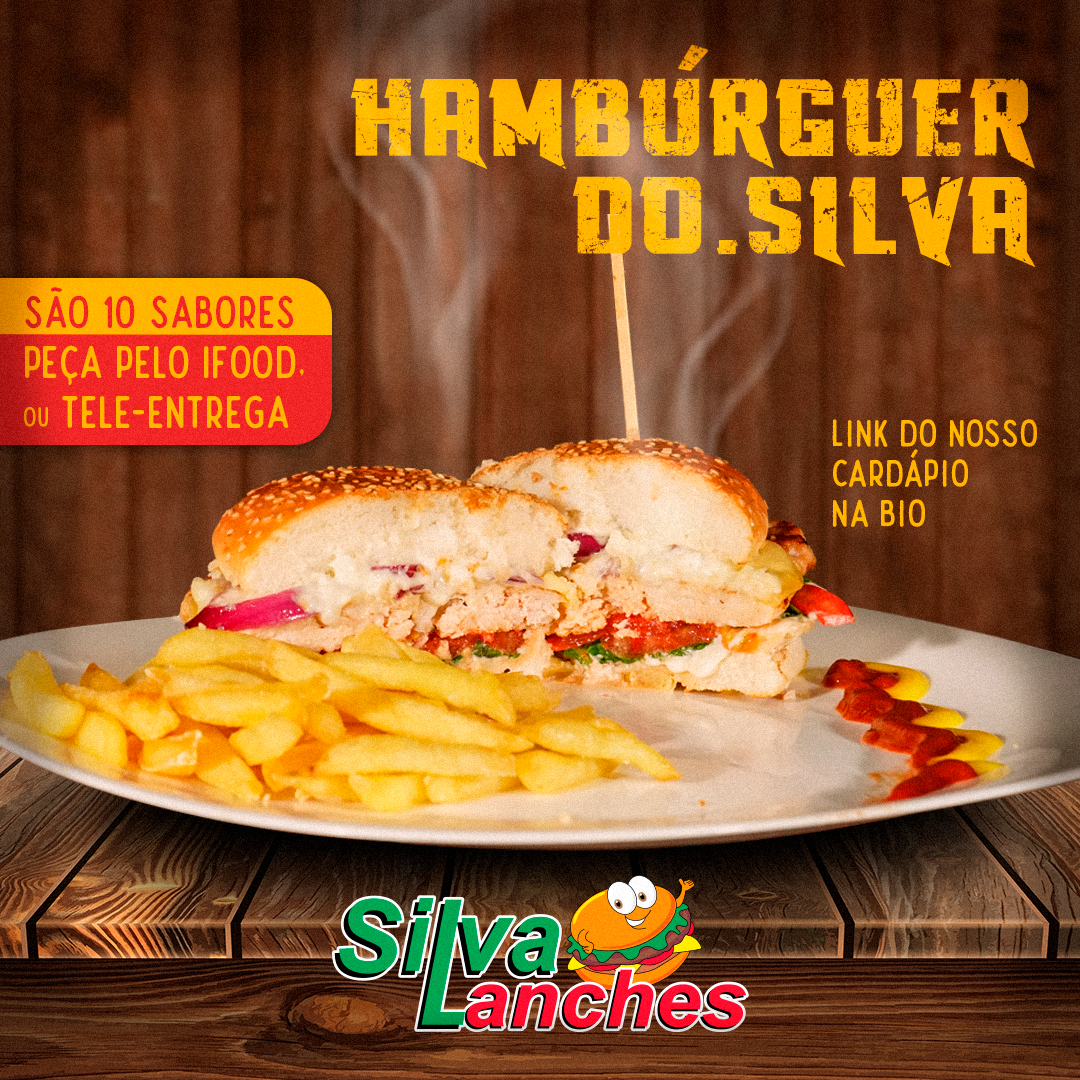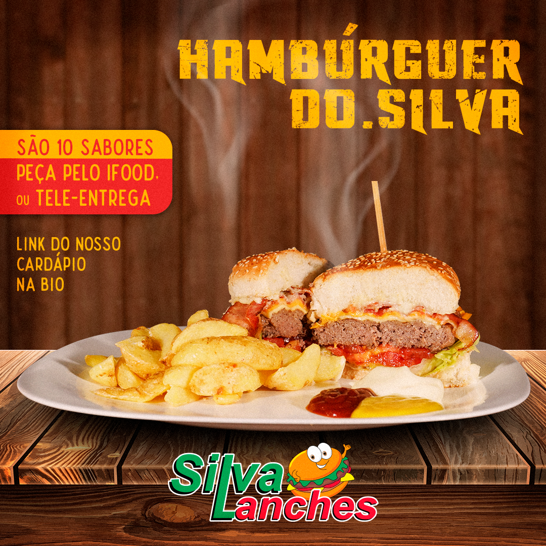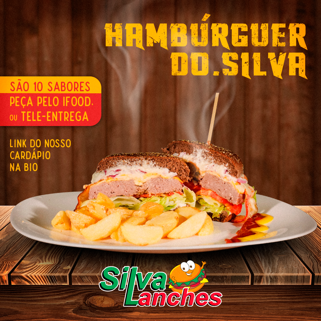 Campanha para lançamento de novos hambúrgueres para a lancheria Silva Lanches. Produção e edição de fotos, geração de identidade visual, marketing digital.