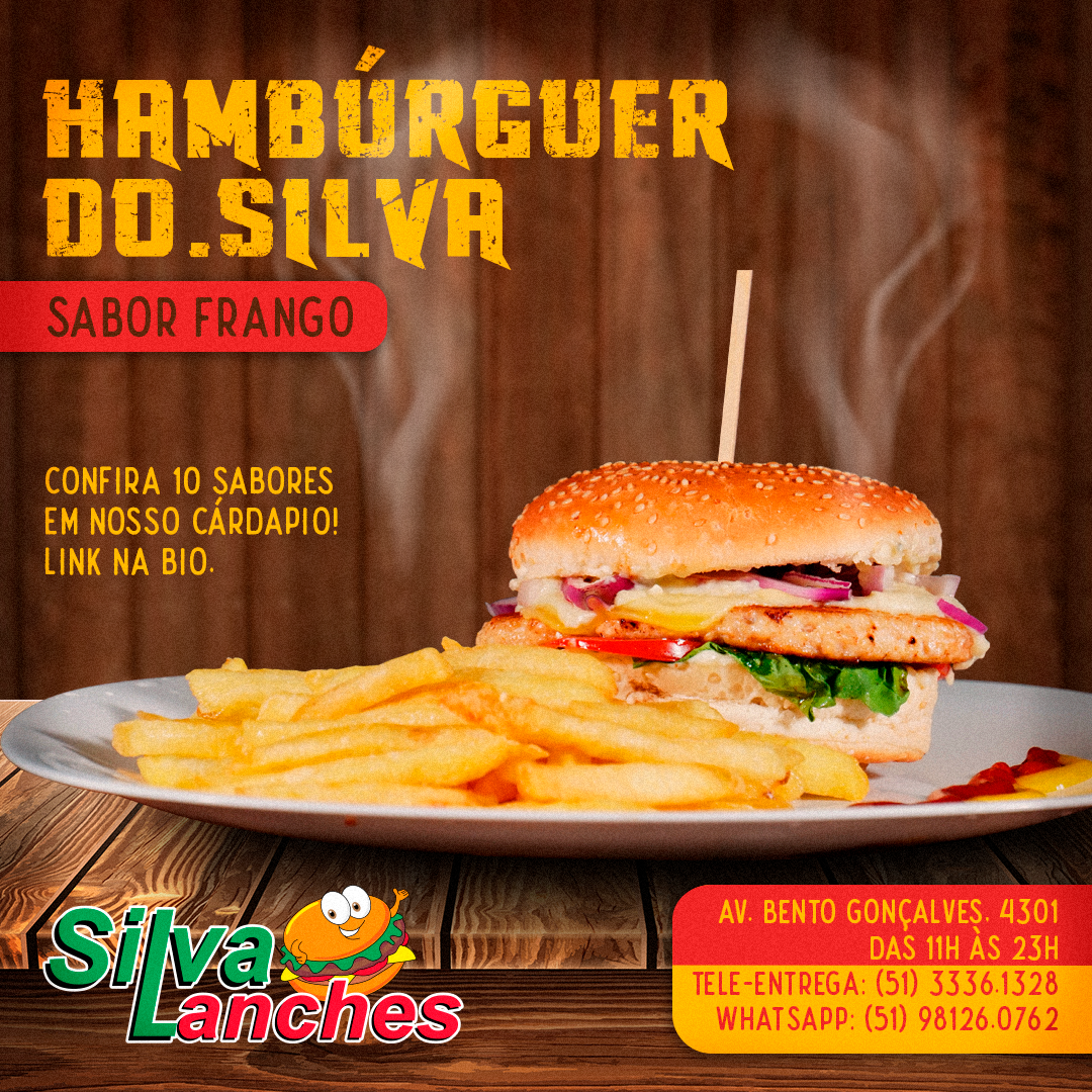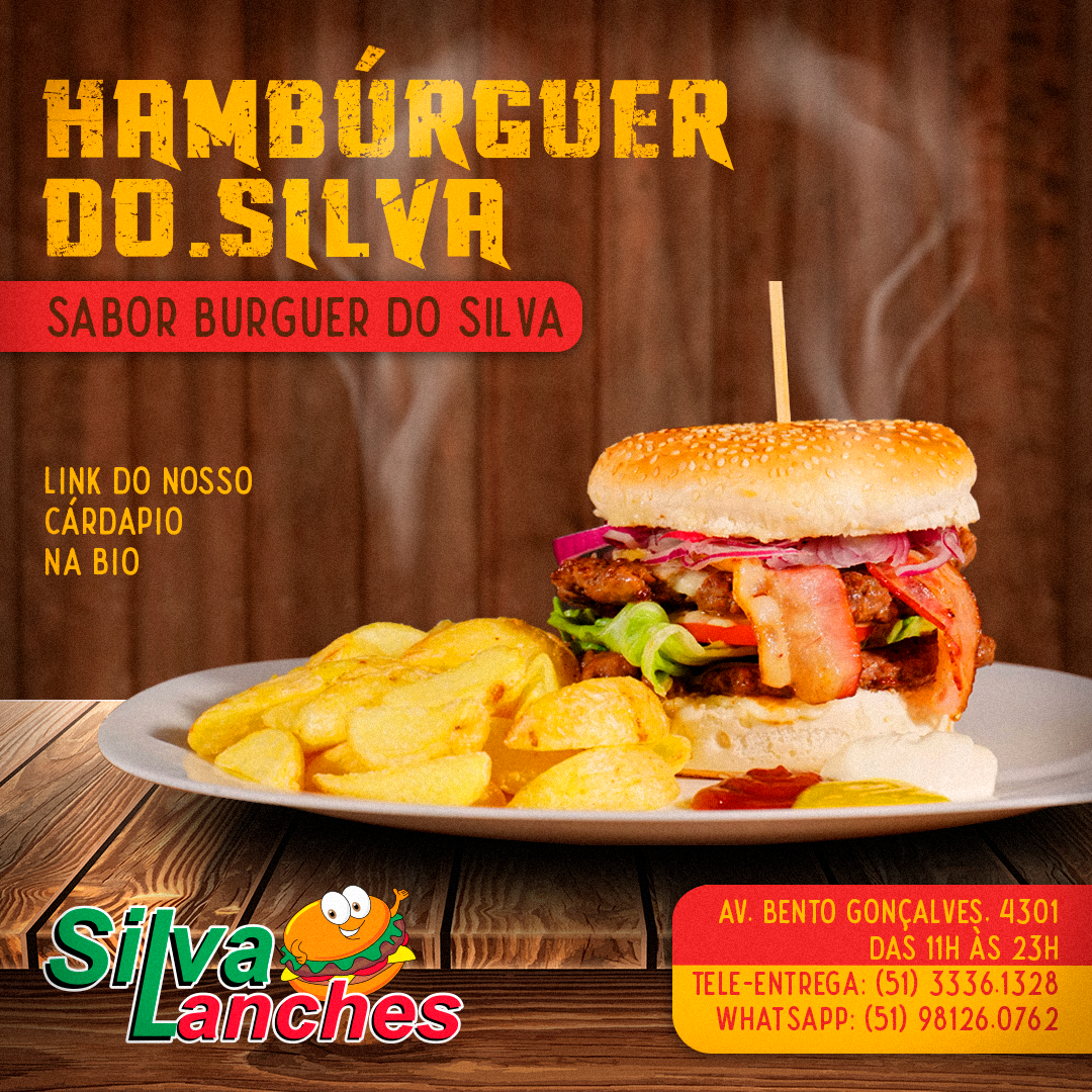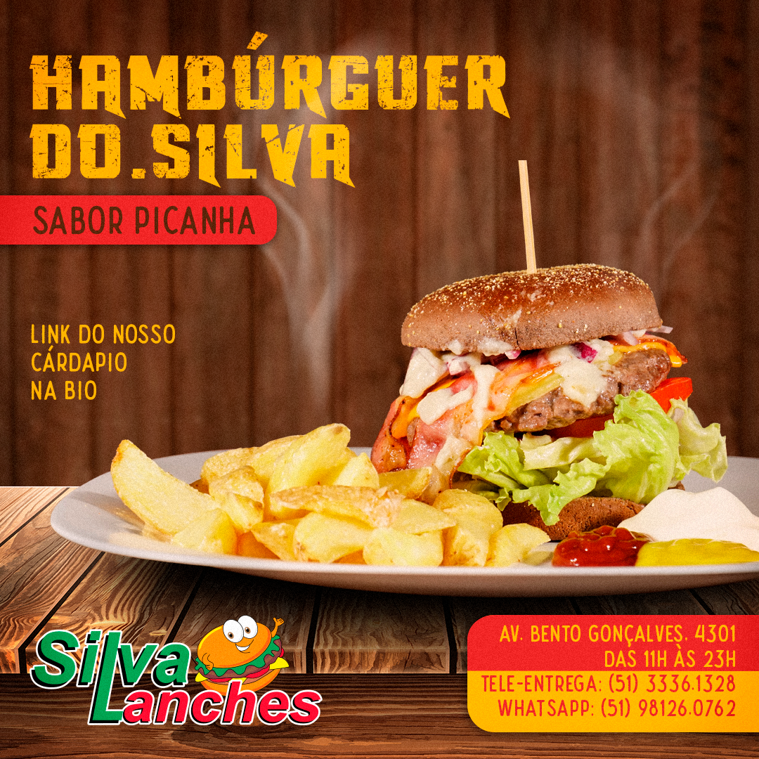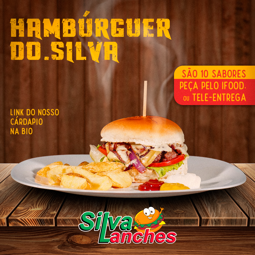 Campanha para lançamento de novos hambúrgueres para a lancheria Silva Lanches. Produção e edição de fotos, geração de identidade visual, marketing digital.