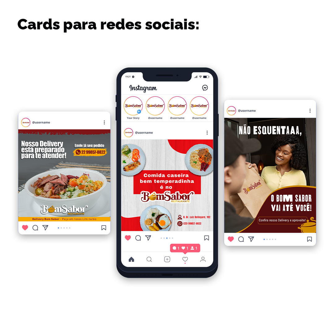Criação de conteúdo para redes sociais do restaurante Bom Sabor em Macaé/Rj. Produção fotográfica, vídeos e postagens para Instagram.